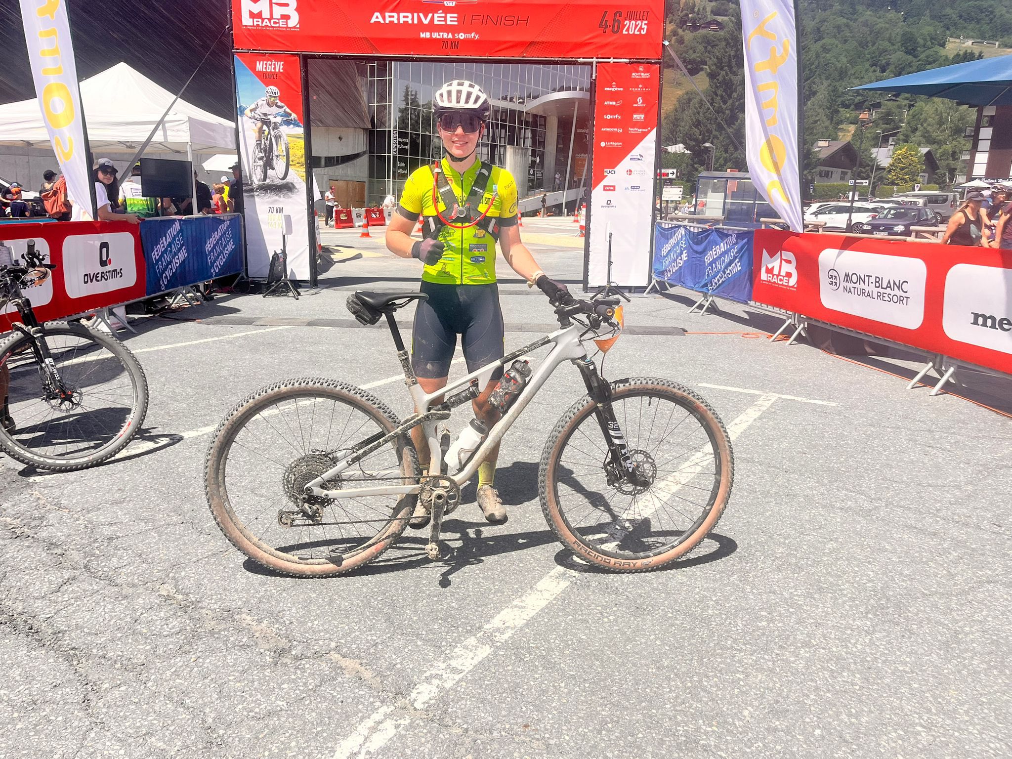 Gestern (07.05.25) stand die französische XCM-Meisterschaft (MTB-Marathon) in Megève (nahe dem Mont Blanc) auf dem Programm: 70 km mit 3500 Höhenmetern. Start war um 6 Uhr, ich musste den Wecker auf 3:30 Uhr stellen. Meine Schwester, mein Onkel und ein Freund haben mir während des Rennens geholfen. Beim Start waren wir 1207 Teilnehmer (aufgeteilt auf 3 Distanzen: 70 km (Meisterschaft), 100 km und 140 km).